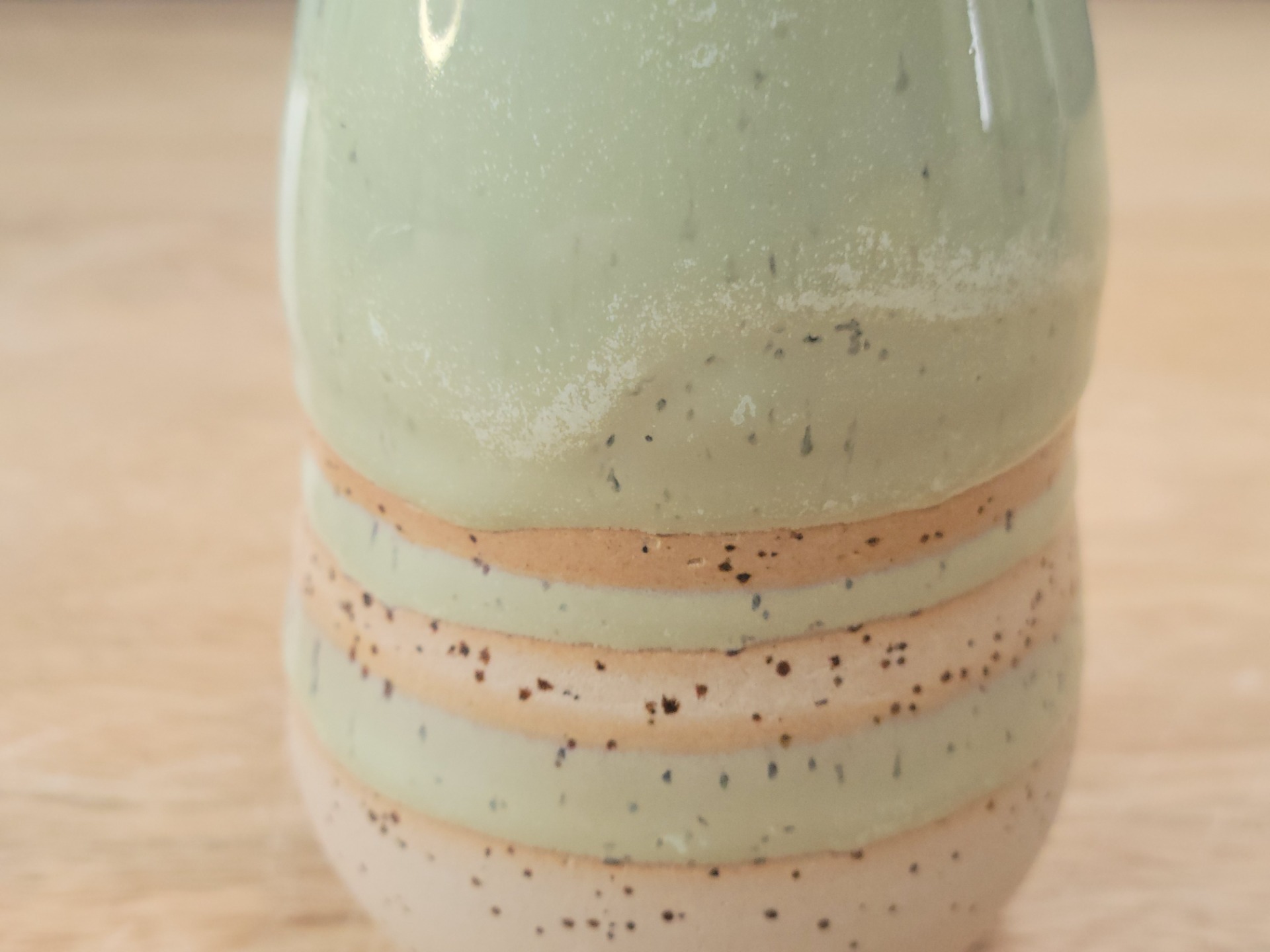 huilier en grès blanc cassé pyrité brun émaillé en vert clair