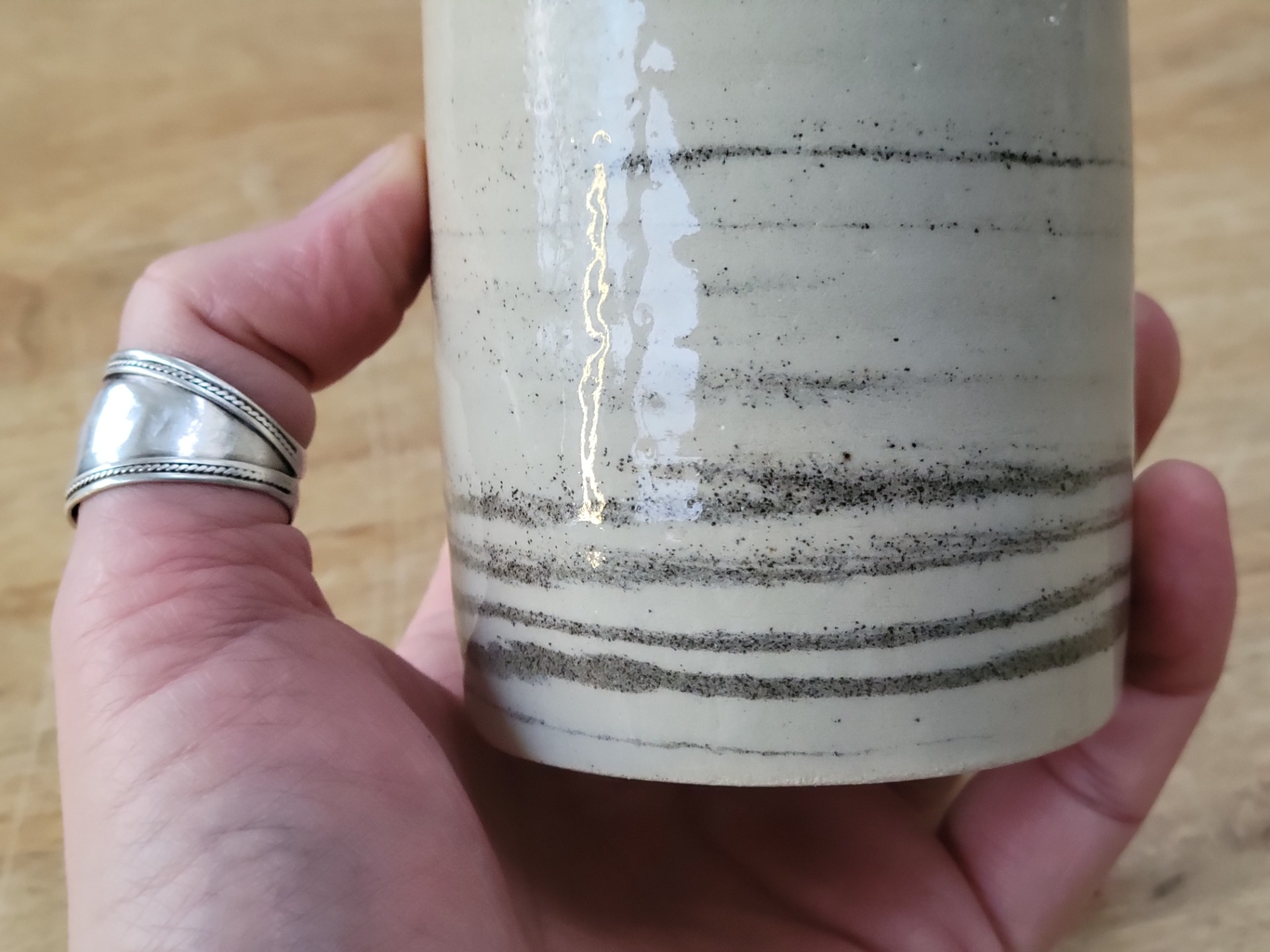Duo de pichet en grès melé de blanc cassé et anthracite émaillé transparent