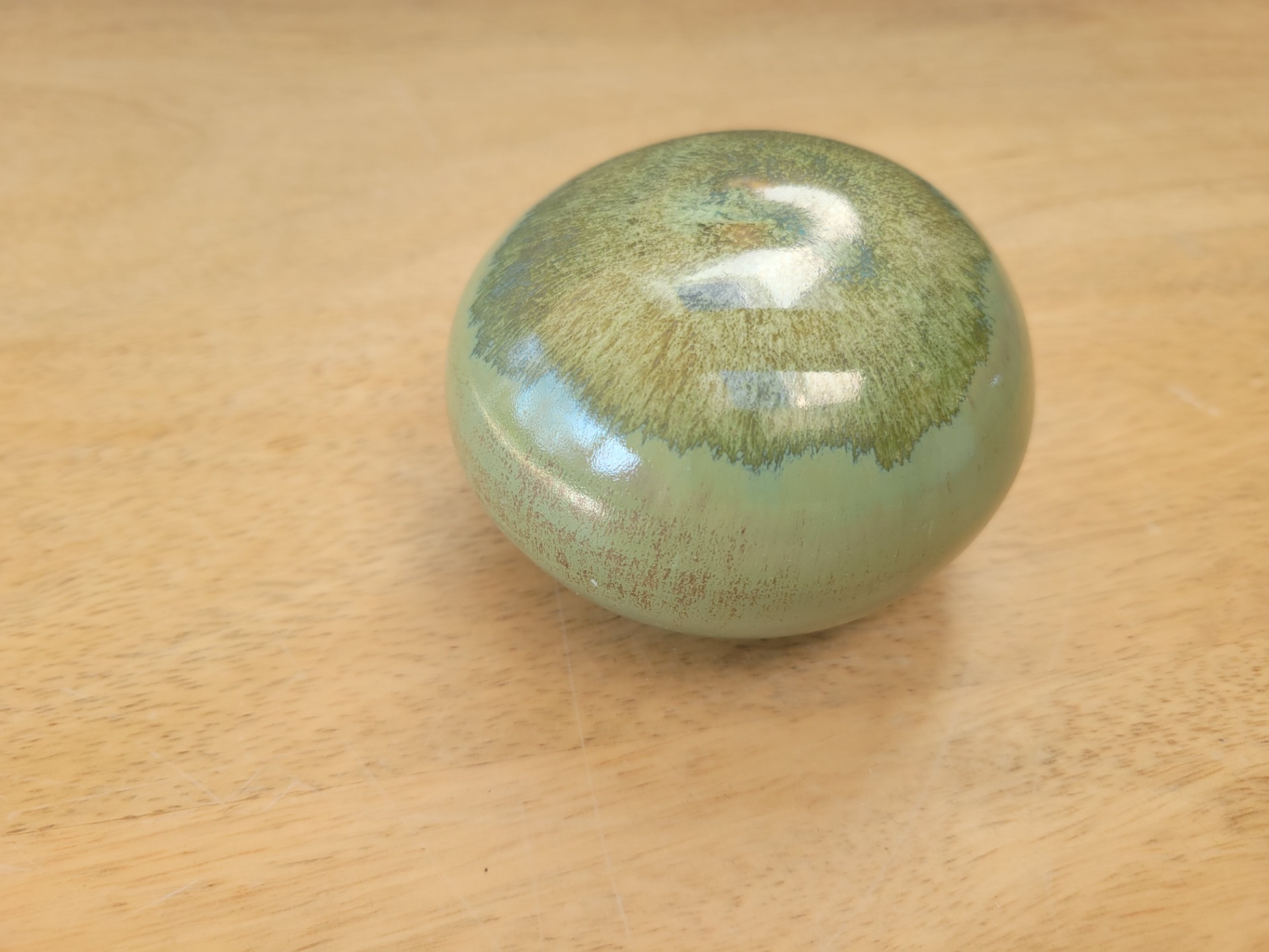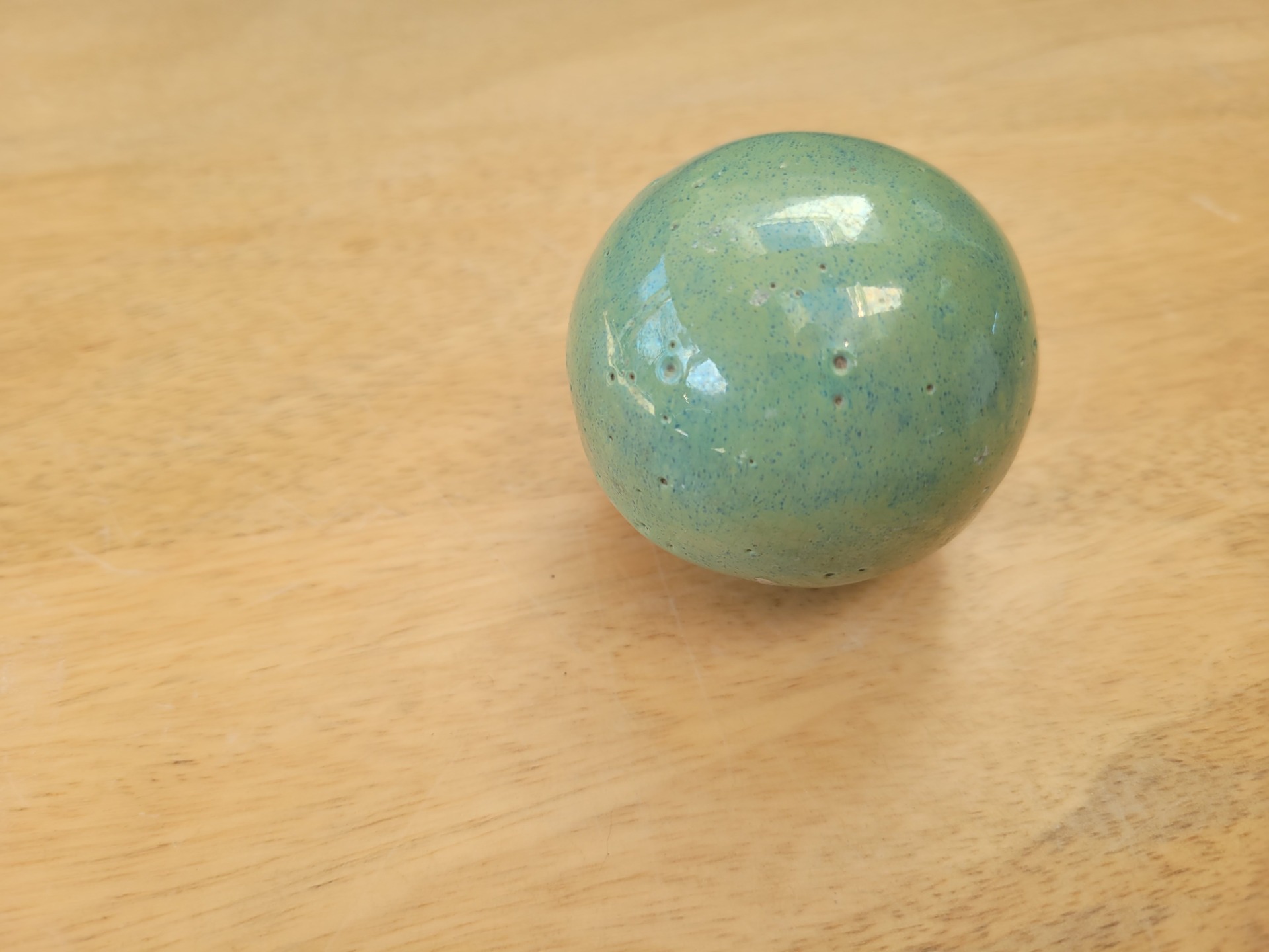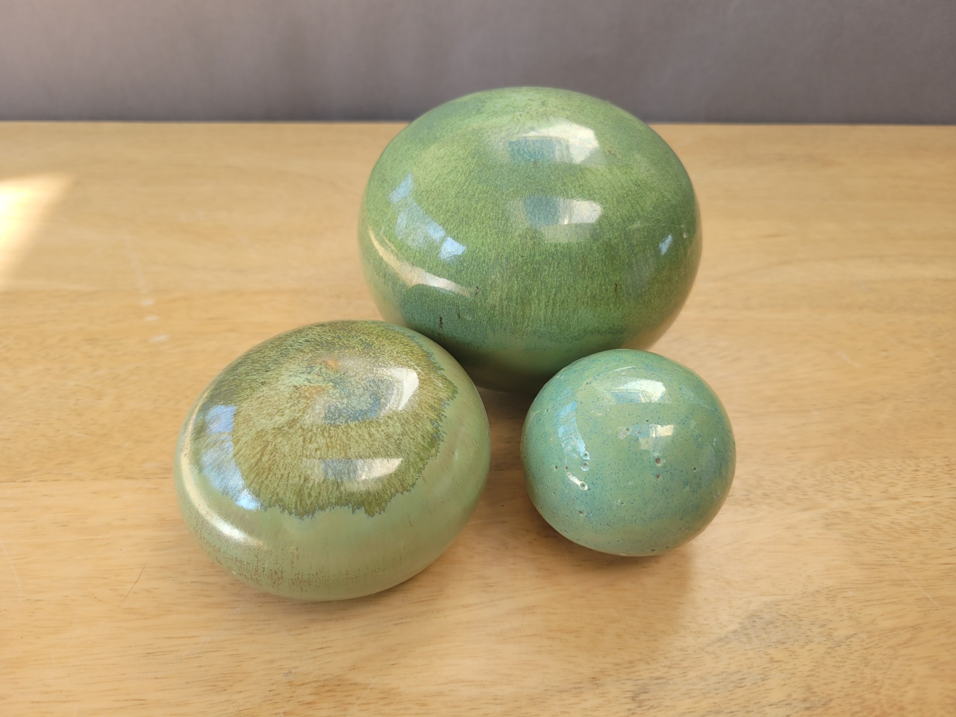 trio de boule en grès blanc cassé émaillé dans des camaïeux de vert