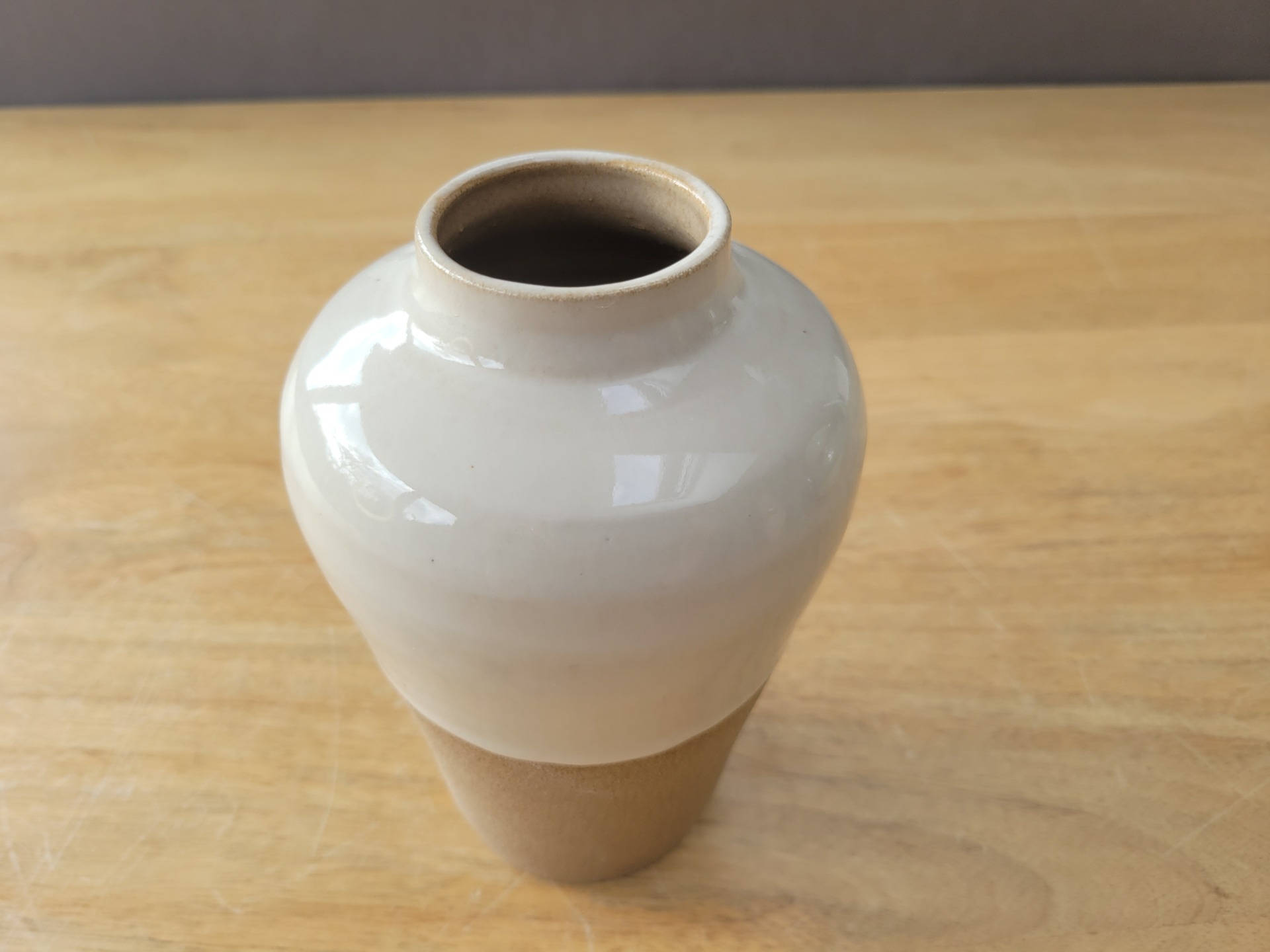 Vase en grès brun (TGS) brut dan le bas , emaillé en blanc cassé sur la partie superieure