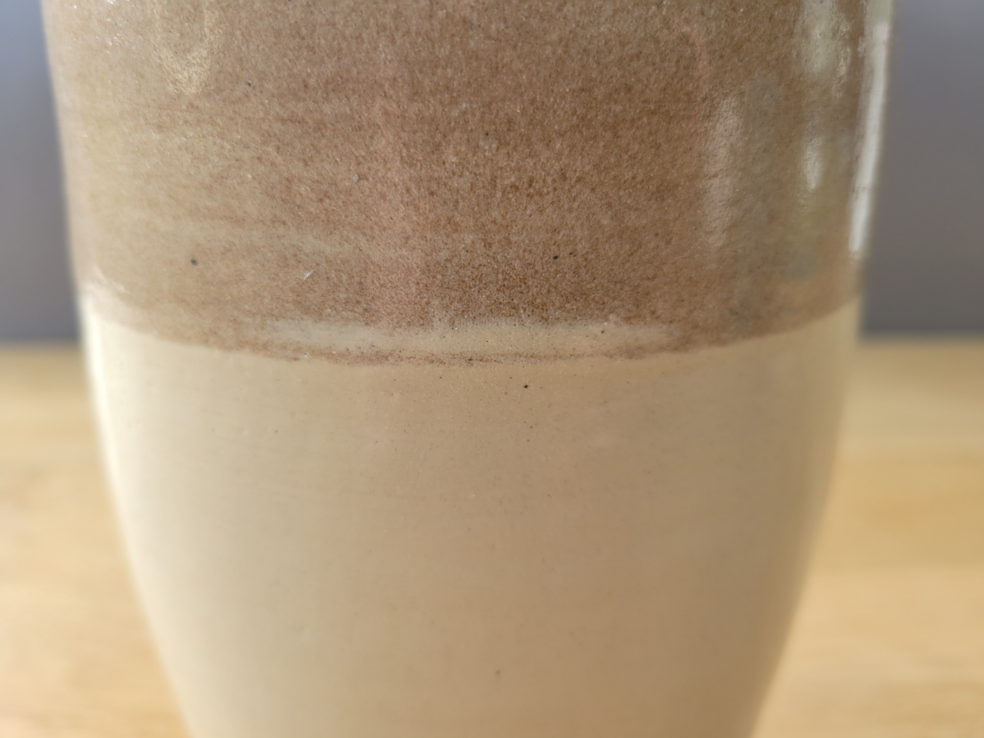 Vase en grès 2 terres différentes, l'une blanc cassé, l'autre brune émaillé en tranparent